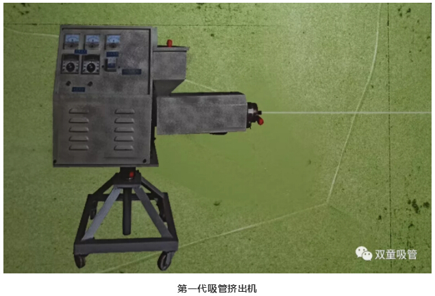 當(dāng)當(dāng)當(dāng)!吸管妞大揭秘啦!下面這臺(tái)就是上世紀(jì)七十年代采用的第一代塑料吸管擠出機(jī)。將塑料顆粒高溫融化后擠出、冷卻、切割而形成一根根的塑料吸管。