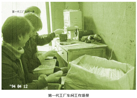 “雙童”在建廠之初租用兩間民房時(shí)期,生產(chǎn)可彎曲吸管采用的就是這種手工半自動(dòng)的形式。所以當(dāng)時(shí)的生產(chǎn)效率和衛(wèi)生條件都比較低下。