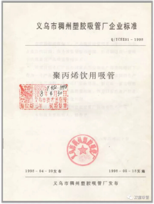 義烏市稠州塑膠吸管廠起草的企業(yè)標(biāo)準(zhǔn)正式發(fā)布