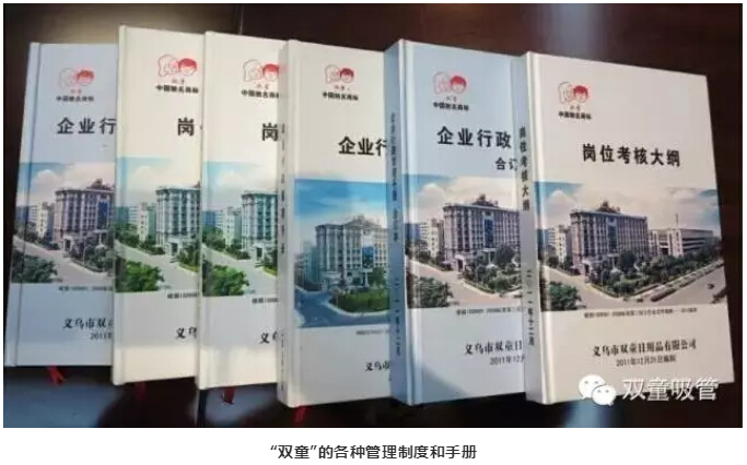 2005年開(kāi)始,“雙童”陸續(xù)推行了《企業(yè)衛(wèi)生管理手冊(cè)》、《寢室管理大綱》 和《企業(yè)行政管理手冊(cè)》、《崗位考核大綱》等一系列衛(wèi)生和作業(yè)規(guī)范文件,逐步轉(zhuǎn)向精細(xì)化管理。