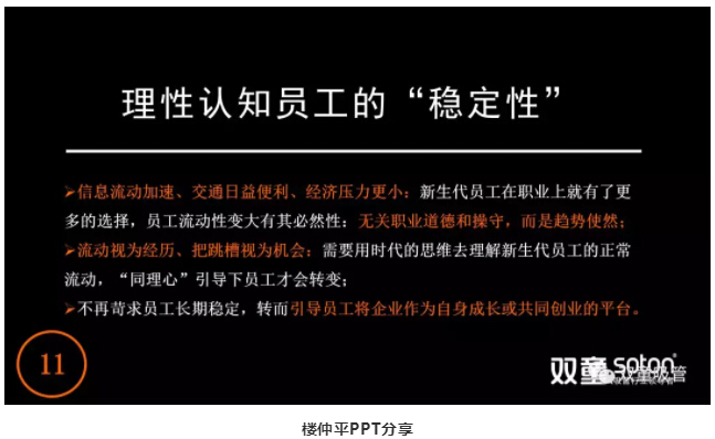 看到這里,很多老板或許認(rèn)為離職率高因?yàn)楝F(xiàn)在的95后員工浮躁、不穩(wěn)定,可事實(shí)真的是這樣嗎?管理者又該如何面對和管理呢?一起來看看樓仲平是怎么說的吧!