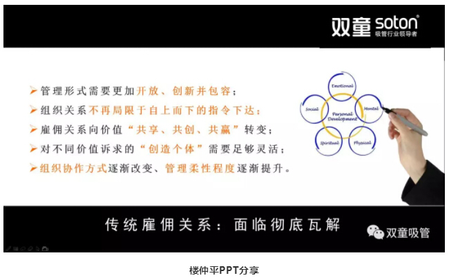 這些年來,“雙童”樓仲平一直十分重視團(tuán)隊管理,敢于授權(quán),用科學(xué)理性的方式引導(dǎo)員工職業(yè)化轉(zhuǎn)變,推動企業(yè)規(guī)范化、制度化、流程化和標(biāo)準(zhǔn)化。