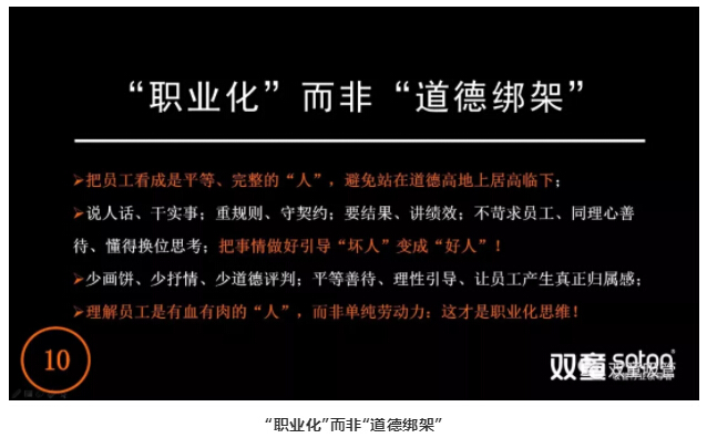 在“雙童”,所謂“忠誠”并不是要求員工單方面向企業(yè)效忠,而是企業(yè)和員工之間相互忠誠,相互理解。