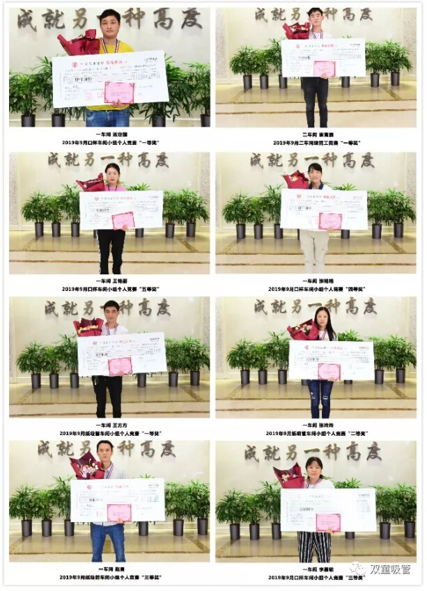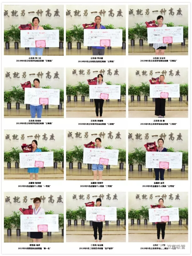 2019年9月口杯車間小組個人競賽一等獎:湯定國;二等獎:胡醫(yī)發(fā);三等獎:李惠敏;四等獎:張艷艷;五等獎:王艷麗