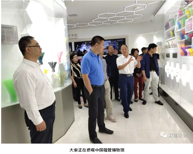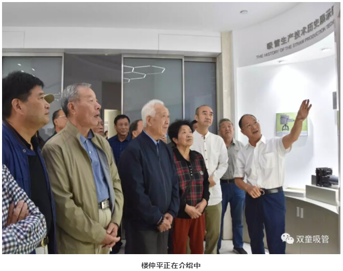 “雙童”樓仲平與總經(jīng)理李二橋帶領(lǐng)老干部一行來到中國吸管博物館。大家一起參觀了產(chǎn)品發(fā)展歷史展示區(qū)、吸管生產(chǎn)技術(shù)展示區(qū)、吸管產(chǎn)品形態(tài)展示區(qū)等各類吸管的展示區(qū)域,了解了吸管的發(fā)展與變遷。