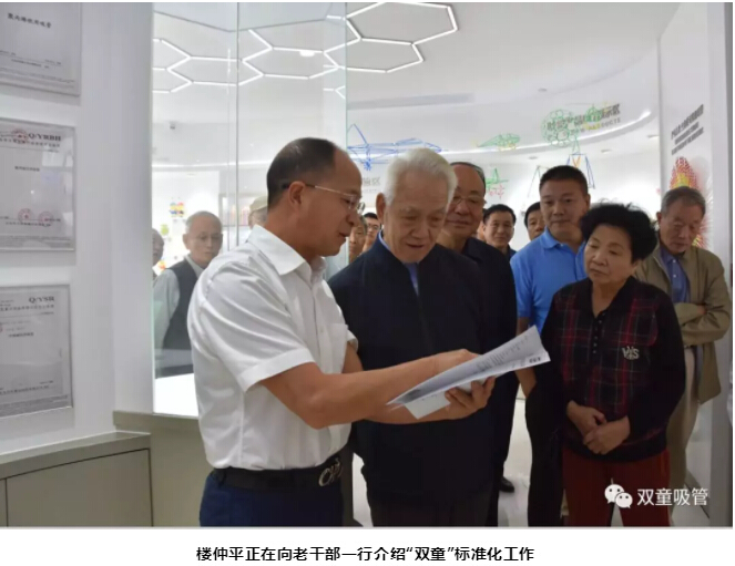 接著,樓仲平又向大家介紹:“雙童”在二十五年時間里完成了多項吸管行業(yè)的國家標(biāo)準(zhǔn)、國際標(biāo)準(zhǔn)。聽完介紹后,老干部一行也對“雙童”的標(biāo)準(zhǔn)化建設(shè)工作連連贊嘆,也為“雙童”獲得全球吸管產(chǎn)業(yè)的標(biāo)準(zhǔn)制定權(quán)和行業(yè)話語權(quán)感到驕傲!
