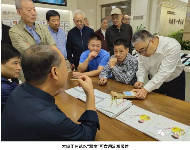 將近半個小時的參觀考察臨近結(jié)束,老干部一行再次表示對“雙童”品類繁多的創(chuàng)新吸管的喜愛,對“雙童”可食用淀粉的支持,以及對“雙童”超前的節(jié)能環(huán)保理念表示高度贊賞!“雙童”也將繼續(xù)努力,堅持、專注,做好產(chǎn)品,做好企業(yè)!