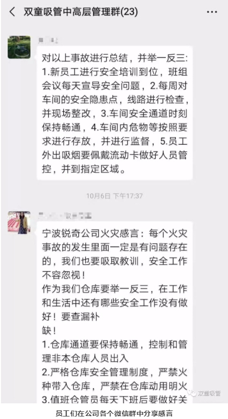 與此同時,針對此次寧波火災(zāi)的重大事件,“雙童”人也結(jié)合企業(yè)內(nèi)部的安全工作寫下了安全感言,從而形成安全生產(chǎn)的高壓線!