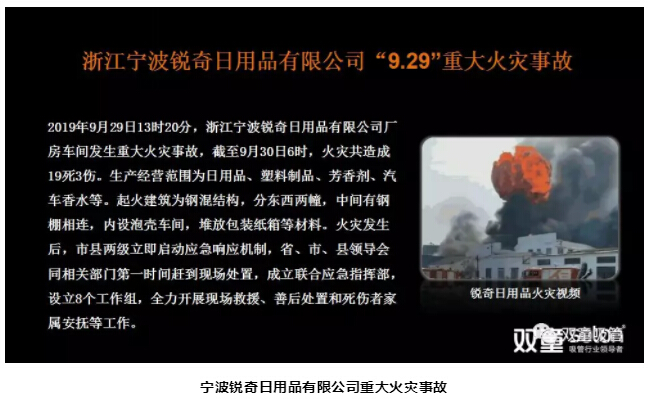 2019年9月29日,寧波銳奇日用品有限公司發(fā)生的重大火災(zāi)事故。一瞬間引起“雙童”強(qiáng)烈危機(jī)感,并在第一時(shí)間進(jìn)行全廠動(dòng)員,加大力度排查安全隱患和宣傳安全知識(shí),確保每一位員工都認(rèn)知到安全的重要性!
