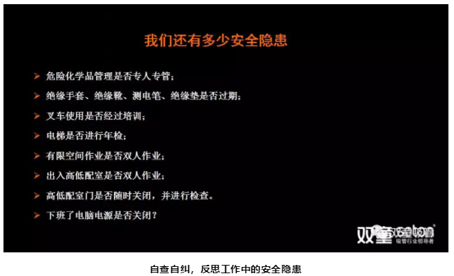 通過(guò)上述對(duì)安全的培訓(xùn),李講師接著引導(dǎo)員工進(jìn)行自我反思,對(duì)工作中存在的安全隱患進(jìn)行自查自糾!
