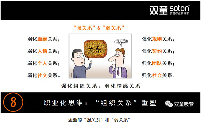 這樣的一種弱關(guān)系原則可以讓管理者將大部分的精力專(zhuān)注于企業(yè)內(nèi)部的管理,專(zhuān)注于事務(wù)解決,從而建立起一套健康發(fā)展的管理邏輯。