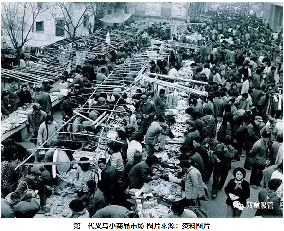 兩年后,樓仲平建議父親去城里“雞毛換糖”,城里人多,能掙的錢也多。到了江西景德鎮(zhèn)之后,他們發(fā)現(xiàn)菜市場門口有人鋪了一塊塑料布,上面放著義烏的小百貨在賣。后來,他和父親也從義烏進了一批小百貨,放到菜市場門口賣。直到1982年,義烏提出興商建市的發(fā)展戰(zhàn)略,建成了義烏第一代市場第一代市場——稠城市場正式開業(yè),聚集起了700多個商戶,每家商戶拿一塊板,一塊塑料布就能開店。