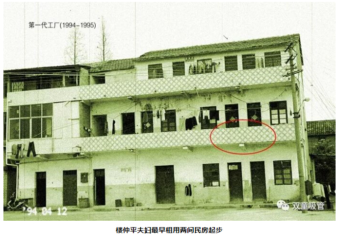 在前前后后經(jīng)歷了擺地攤、有獎銷售、打鐵、當(dāng)“倒?fàn)敗?、養(yǎng)魚等20多個行當(dāng)后,樓仲平在1991年回到了義烏,用2000元租了半個攤位,抽簽時抽到了日用百貨。于是,他就找到了塑料吸管等一次性塑料用品,通過兩年的時間,把塑料吸管賣到了義烏市場的銷量NO.1。在1993年,義烏市政府引導(dǎo)工商經(jīng)營戶“以商轉(zhuǎn)工”,“以貿(mào)轉(zhuǎn)工”,“工貿(mào)結(jié)合”,鼓勵個體戶做實業(yè)加工。當(dāng)時,大家都不看好吸管這個產(chǎn)品,因為吸管算的上是義烏小商品當(dāng)中最難做的生意,但他依然選擇扎根于這個行業(yè)。在一次機緣巧合下,樓仲平買下了加工吸管廠老板的機器,開始接觸了吸管的生產(chǎn)制作。在1994年,樓仲平夫婦在福田鄉(xiāng)寺后盛村租用了兩間普通民房作為生產(chǎn)場地,邁出了吸管創(chuàng)業(yè)的第一步。就這樣在經(jīng)歷了多個行當(dāng)?shù)氖『?,終于在吸管這個行業(yè)上扎根!