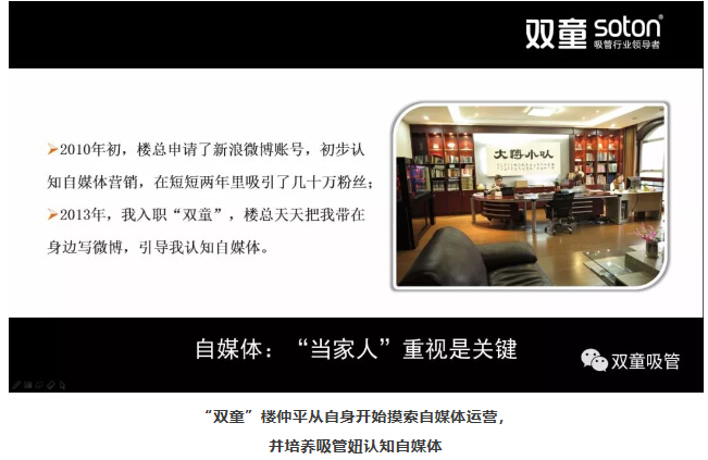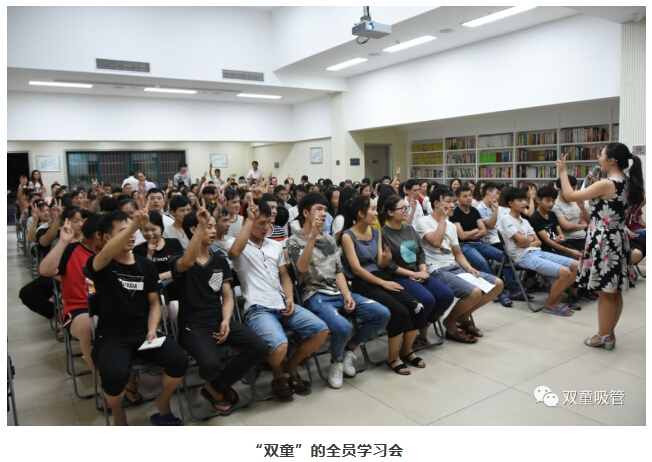 2010年,樓仲平在摸索自媒體運(yùn)營過程當(dāng)中,不斷地培養(yǎng)團(tuán)隊(duì)來運(yùn)營自媒體項(xiàng)目。在此過程中,樓仲平把來自浙江傳媒學(xué)院畢業(yè)的吸管妞周上帶在身邊培養(yǎng),每天一起運(yùn)營自媒體傳播,慢慢灌輸“雙童”企業(yè)文化和自媒體運(yùn)營積累的經(jīng)驗(yàn),并培養(yǎng)“吸管妞”的團(tuán)隊(duì)意識(shí)和管理能力,從而開始招兵買馬組建文宣團(tuán)隊(duì)。