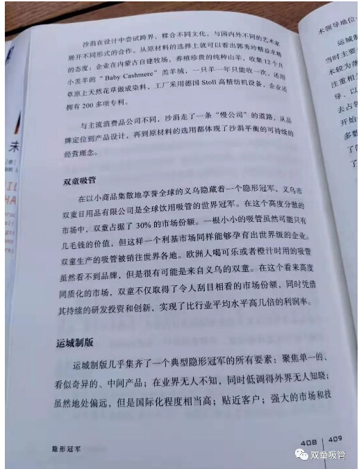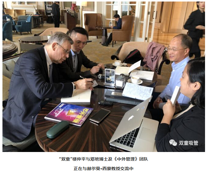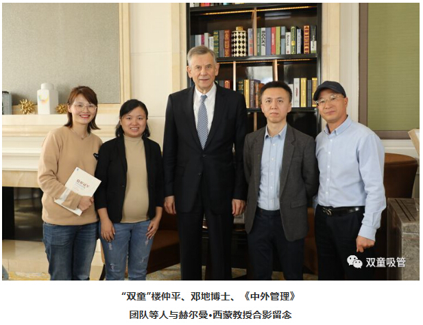 中國(guó)企業(yè)千千萬(wàn),說(shuō)到“隱形冠軍”也有不少,可為何此次《中外管理》雜志特別邀請(qǐng)了樓仲平一同前往采訪(fǎng)西蒙教授呢?原來(lái),早在2018年的首屆“中國(guó)造·隱形冠軍”評(píng)選活動(dòng)中,“雙童”就經(jīng)過(guò)陳春花教授等七位評(píng)委專(zhuān)家的評(píng)選,從24家優(yōu)秀企業(yè)中脫穎而出,被推選為首批“中國(guó)造·隱形冠軍”。除此之外,在西蒙教授最新所著的《隱形冠軍》一書(shū)中,“雙童”也作為隱形冠軍企業(yè)案例被收錄其中!所以,此次的采訪(fǎng)“隱形冠軍之父”西蒙教授之行,“雙童”樓仲平作為中國(guó)隱形冠軍企業(yè)代表參與其中,也是再合適不過(guò)了!