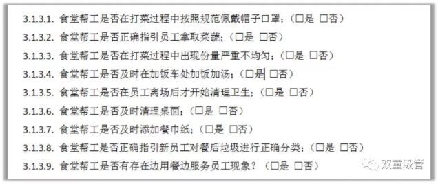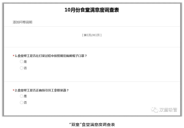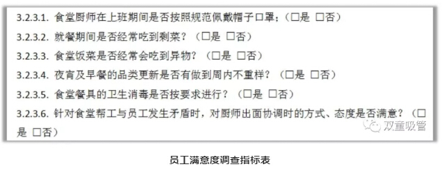 在此次后勤團(tuán)隊(duì)競(jìng)賽中,評(píng)比依據(jù)主要是以食堂成本控制、食堂安全、衛(wèi)生、質(zhì)量等方面進(jìn)行評(píng)比,其中尤為重要的一個(gè)指標(biāo)就是員工滿意度,公司每月會(huì)進(jìn)行2次員工滿意度調(diào)查,抽取60名員工對(duì)食堂工作進(jìn)行評(píng)價(jià),以此作為評(píng)比依據(jù)。