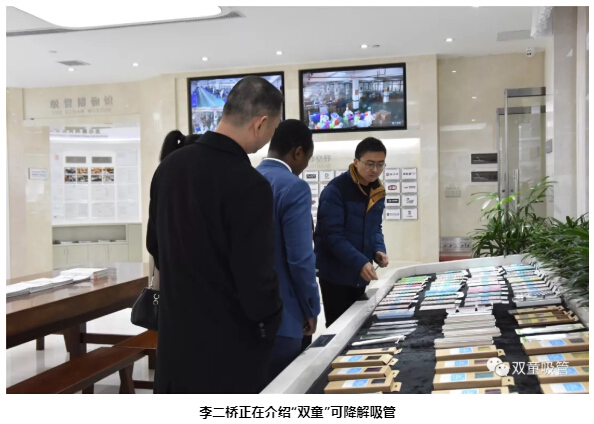 首先,“雙童”李二橋帶領(lǐng)大家來到了中國吸管博物館。大使一行參觀了這里展示的700余種吸管,了解了吸管的發(fā)展與變遷。