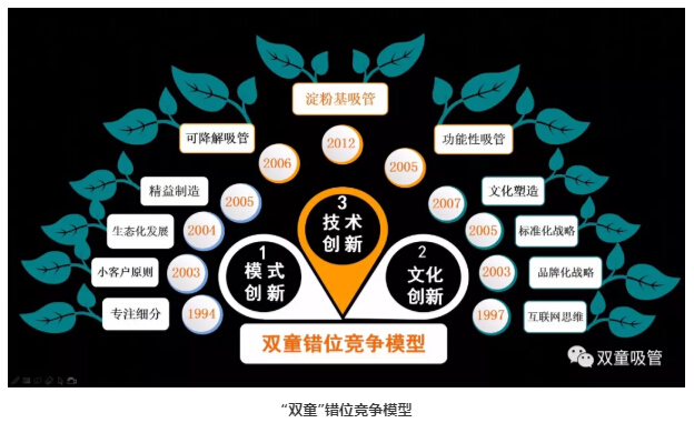 又比如:“雙童”在2005年便認(rèn)知到塑料材料的局限性,并創(chuàng)新研制出了一款以玉米淀粉為原料的生物質(zhì)可降解吸管,以解決環(huán)境污染問(wèn)題。雖然這款吸管在前面十年幾乎沒(méi)有獲利,但在近年環(huán)保風(fēng)暴來(lái)襲之下,“雙童”可降解吸管的銷量已經(jīng)占到了“雙童”銷量的40%,一年加起來(lái)的銷量比過(guò)去十幾年還要多。