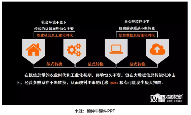 因此,在時代背景的轉變下,我們原先認知的經驗很有可能就成了絆腳石。下面,樓仲平繼續(xù)引導大家理解這頁PPT: