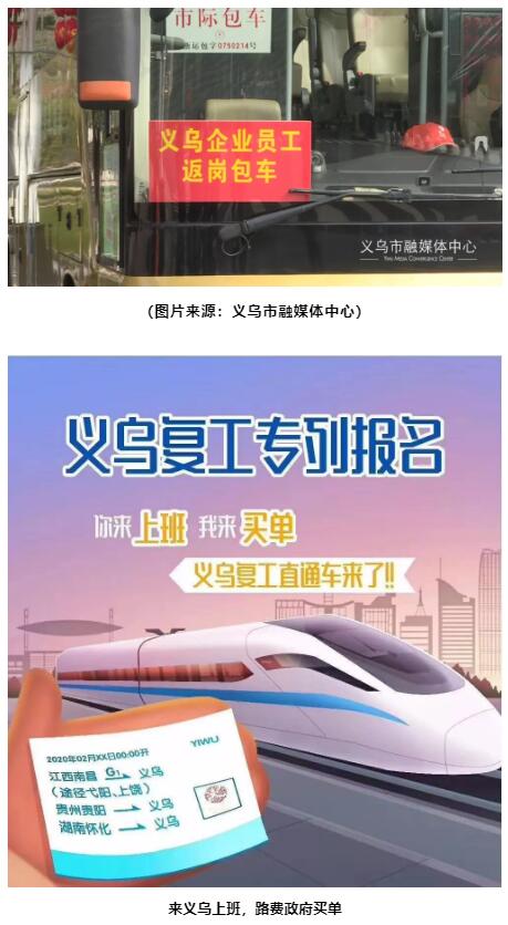 義烏市政府包車前往云南、安徽等地接員工回義上班;
