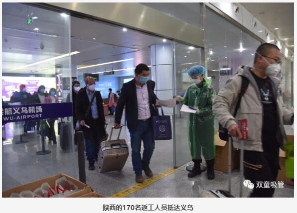 “義烏,我們回來(lái)了!”2月24日下午15:40,“雙童”的五位員工乘坐了一架從陜西省漢中市駛出的“義烏復(fù)工返崗專(zhuān)機(jī)”抵達(dá)義烏。