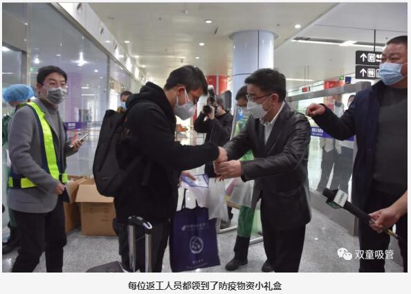 其中,“雙童”的5位陜西籍員工也乘坐此列免費(fèi)航班返義,他們是“雙童”的技術(shù)人員、成型工、包裝工、司機(jī)等等,他們的到來(lái)將大大緩解“雙童”的復(fù)工壓力。