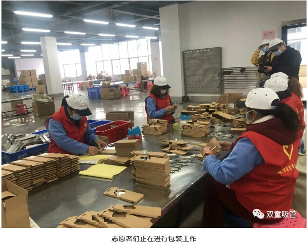 原來,為了有序幫助企業(yè)復(fù)工復(fù)產(chǎn),連日來,由義烏市工會、婦聯(lián)等政府單位組織的多支志愿者隊(duì)伍來到“雙童”生產(chǎn)一線免費(fèi)當(dāng)“幫工”,解決企業(yè)的燃眉之急。