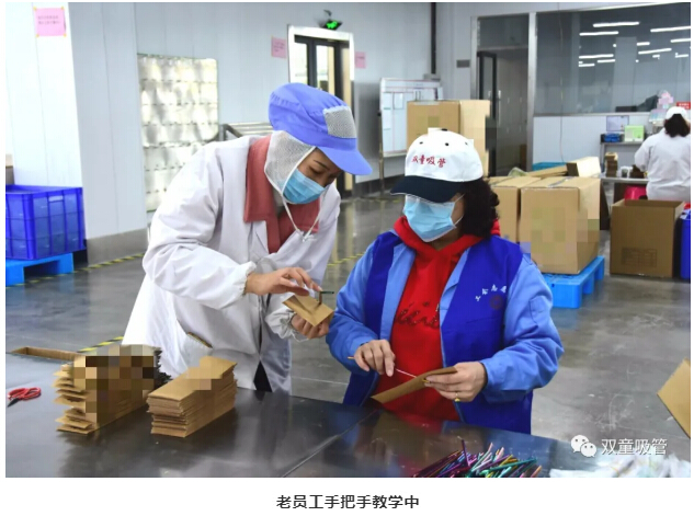 在簡短培訓(xùn)、拜師結(jié)對后,新員工們穿上工裝,就正式上崗了。瞧,在老員工的幫助下,大家鉚足勁邊學(xué)邊干,沒多久掌握了工作要領(lǐng),包裝速度有了顯著提升。