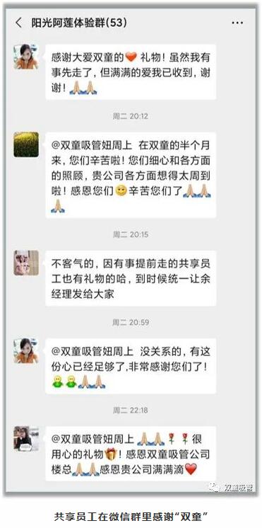 歡送會(huì)結(jié)束后,大家紛紛在體驗(yàn)群里分享了這些天在“雙童”的感受,吸管妞也在此歡迎大家有機(jī)會(huì)再來(lái)“雙童”做客!