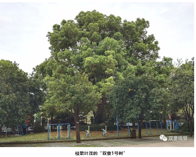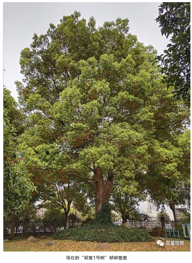 其實(shí),這棵香樟樹來“雙童”已經(jīng)15年了,別看它現(xiàn)在枝繁葉茂的,2005年剛移植進(jìn)來時還是個“光頭小子”呢!