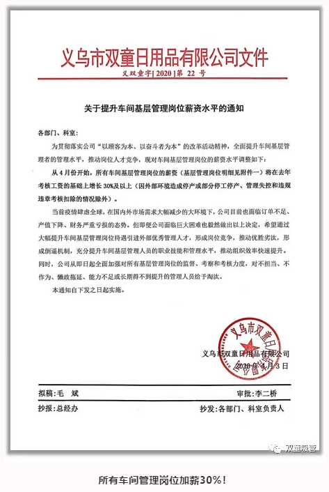 當(dāng)前,全球疫情肆虐,經(jīng)濟(jì)環(huán)境急劇惡化,不少企業(yè)陷入經(jīng)營(yíng)困境,開(kāi)始了裁員降薪潮。在這樣的大背景下,2020年4月2日,“雙童”毅然推動(dòng)第二波改革活動(dòng),并將改革主題確定為“組織效率已成雙童生死劫”!次日,“雙童”發(fā)布了一份紅頭文件,明確提出給員工加薪且至少30%以上,引發(fā)了全廠沸騰!這背后究竟是何邏輯?有何深意?