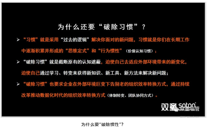 為什么要破除慣性呢?因?yàn)榱?xí)慣就是采用“過(guò)去的邏輯”解決你面對(duì)的新問(wèn)題,是大家在長(zhǎng)期工作中逐漸積累并形成的“思維定式”和“行為慣性”。