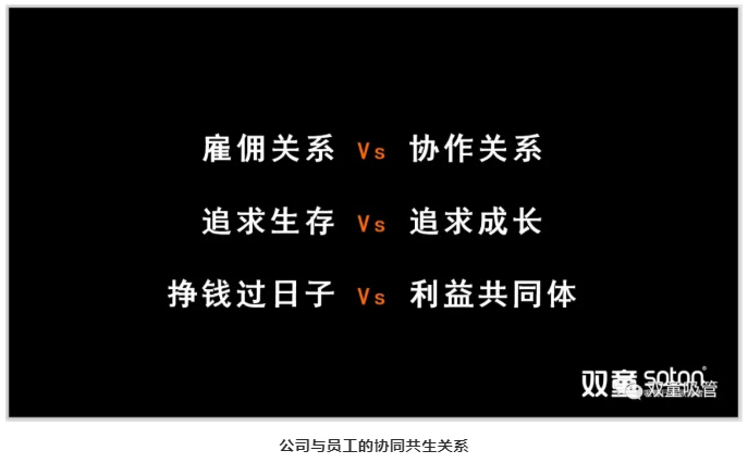 通過(guò)以上轉(zhuǎn)變,從而推動(dòng)“雙童”形成“公司搭建平臺(tái)、員工努力創(chuàng)造,企業(yè)和員工共同成長(zhǎng)”的協(xié)同共生關(guān)系。