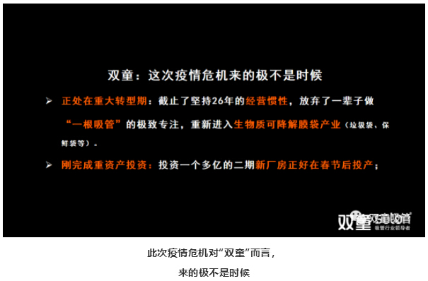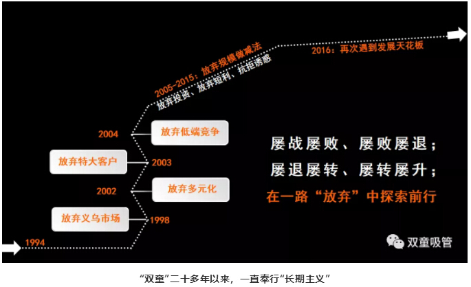 答:這些年來,‘’活下去”確實已經(jīng)成為“雙童”最大的使命。對我們而言,提出“活下去”這樣一種危機理論,是因為在外部動蕩環(huán)境下,計劃沒有變化快,這就要求企業(yè)做出轉變,這種轉變是內(nèi)在的,其本質是提醒組織成員,通過直面“死亡”,獲得反悟,讓自己重生。并且,我們所說的“活下去”,并不是茍且偷生,而是要有價值、有尊嚴地“活下去”,唯有如此,這樣的使命對“雙童”的長期發(fā)展才更有意義。