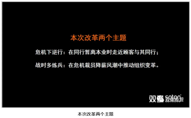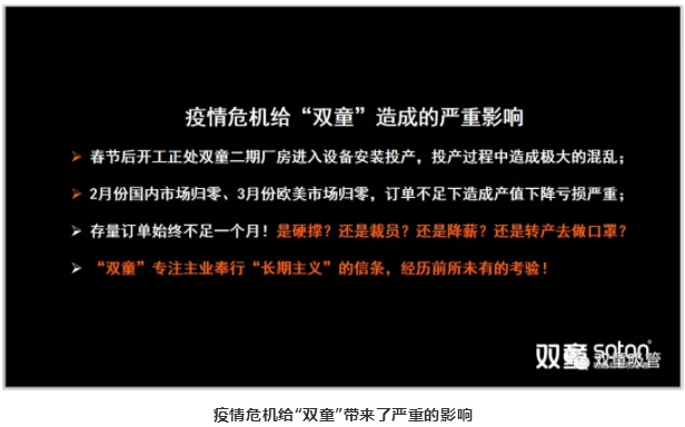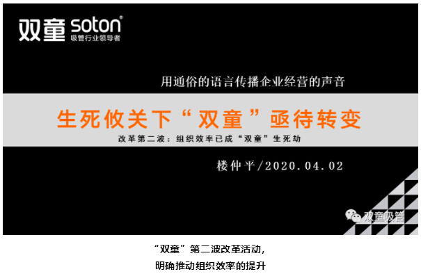 因此,在危機來臨之時,“雙童”并沒有恐慌,而是選擇抓住機會,迎接挑戰(zhàn)。但是在很多身邊的同行都開始轉行做口罩,做防疫物資的時候,奉行長期主義的“雙童”認為,轉行踩風口做口罩我們并不擅長。所以,4月2日,“雙童”開始推動企業(yè)第二波改革活動,明確推動組織效率的提升。