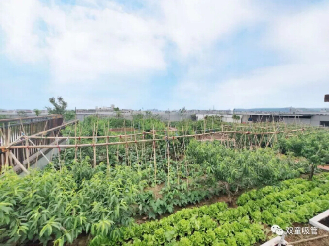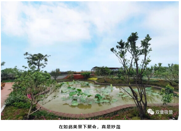 看!聚會的地點就在“雙童”新廠房5000平米的“屋頂果園”及空中學習吧,200多棵果樹茁壯成長,還有菜地、池塘、藕塘、百花池等,瓜果蔬菜……晚餐的食材大部分可以就地取材,真是太贊啦!