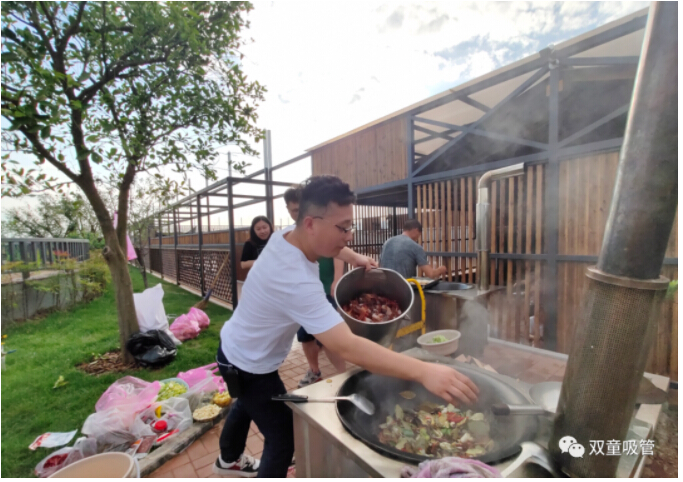 一切準備就緒,我們將廚房直接轉移到了菜園地邊,放上鍋爐直接開炒啦!現(xiàn)炒現(xiàn)燒的香味真是太贊了!