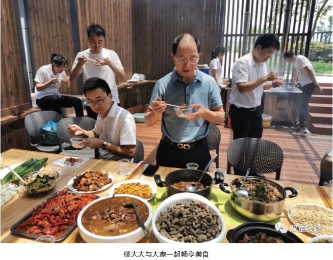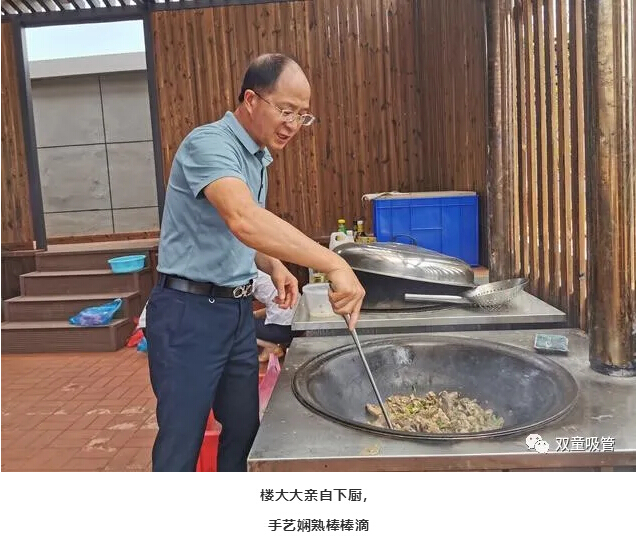 終于,忙碌了許久的樓大大也圓滿完成了自己的“廚師”任務(wù),來到席間與大家一同享用美味。