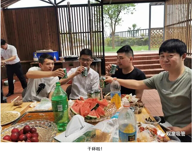 如此盡興的聚餐,怎么能少了啤酒助興了,大家開心地舉起手中的啤酒干杯,一飲而盡!