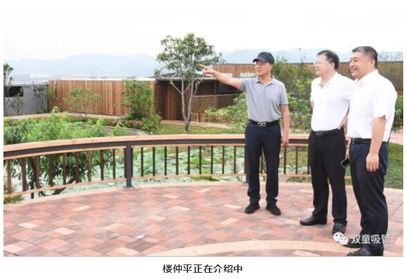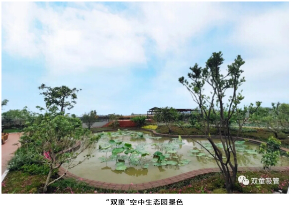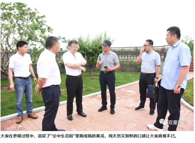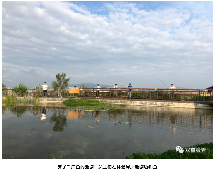 最后,樓仲平陪同李中文社長(zhǎng)一行來到“雙童”新廠房的“空中生態(tài)園”,樓仲平介紹道:“這里栽種了200多棵果樹,還有各種蔬菜基地、藕塘、百花苑、還有養(yǎng)了千斤魚的池塘、標(biāo)準(zhǔn)的籃球場(chǎng)......