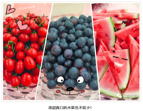接著一起來看看“雙童”生日會的美味:涼拌牛肉、水煮魚、小雞燉蘑菇、義烏餛飩……有好多以前沒出現過的新鮮菜式呢!除此之外,還有清新爽口的水果來助陣,美味享不停。看得妞口水直流!