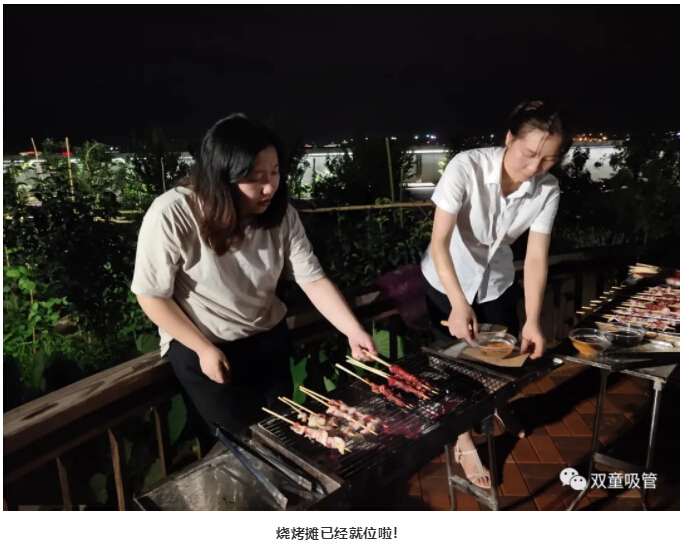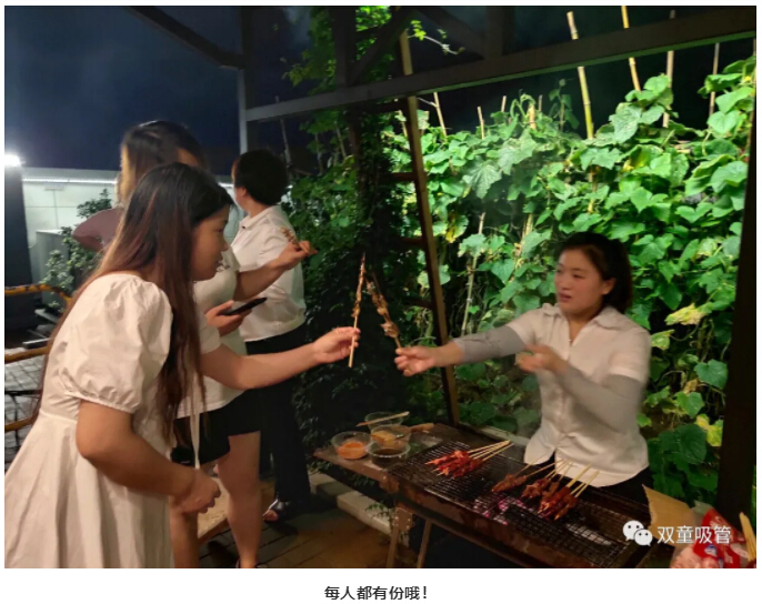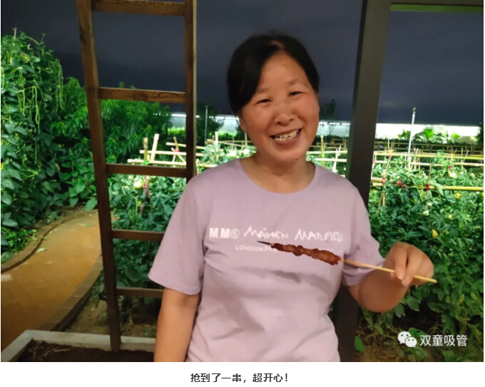 接下來,我們的燒烤師傅要出動啦!就在菜園地旁擺起了燒烤架!這一次不用壽星們動手啦,有吸管妹妹和后勤科的小伙伴們化身“燒烤師傅”為大家服務哦!