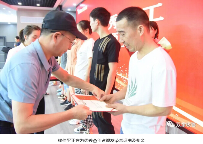 年初針對企業(yè)招工,“雙童”推出伯樂爭霸賽,鼓勵員工“以老帶新”。在此次員工大會上,“雙童”也對為企業(yè)注入新生力量做貢獻(xiàn)的員工們進(jìn)行了表彰!