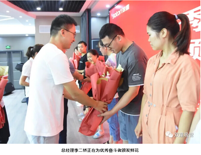會上,“雙童”樓仲平及總經(jīng)理李二橋為優(yōu)秀奮斗者們頒發(fā)了鮮花、獎金以及榮譽證書,并與優(yōu)秀奮斗者們合影留念。