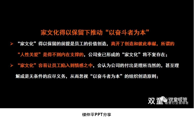 因此,樓仲平引導(dǎo)大家認(rèn)知:“雙童”是所有員工以創(chuàng)造價值獲得生存為最高追求的平臺,而不是休閑和養(yǎng)老的地方。所以,“雙童”在倡導(dǎo)家文化的同時,提出了“雙童不是我的家”觀點,提倡“以奮斗者為本”,希望以此來提升組織效率!