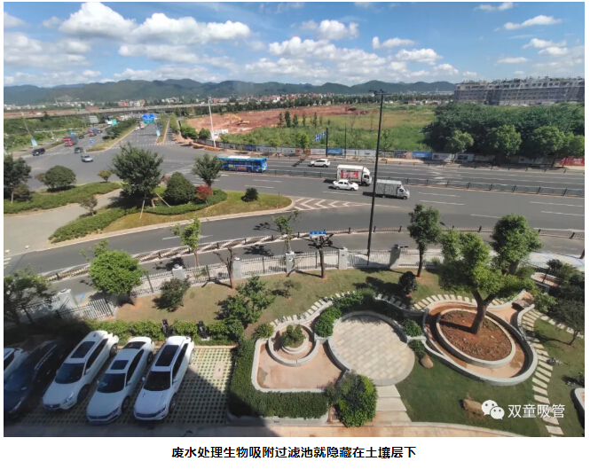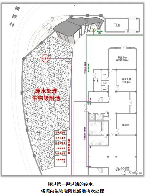 在這個(gè)過程中,員工日常生活中所產(chǎn)生的廢水過濾后,會(huì)流向生物吸附過濾池中,通過過濾池上栽種的樹木根須對水中的物質(zhì)、養(yǎng)分進(jìn)行再次吸附處理,這不僅能再次過濾處理廢水,同時(shí)也能樹木生長的越來越好。