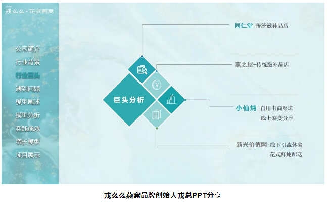 通過(guò)蘇淼老師對(duì)“錯(cuò)位競(jìng)爭(zhēng)”的簡(jiǎn)單分享后,戎么么燕窩品牌創(chuàng)始人戎群蕾現(xiàn)場(chǎng)和大家分享了自己是如何運(yùn)用混沌思維模型顛覆燕窩行業(yè),2年開(kāi)設(shè)9家分店。