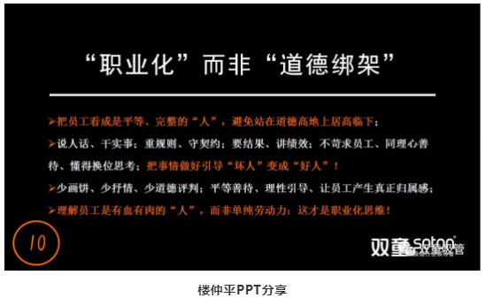 樓仲平認(rèn)為,所謂“忠誠”的員工并非要一輩子留在公司,只要他在契約范疇內(nèi)不違背公司,在合約解除后不損害公司,就是“忠誠”的員工。
