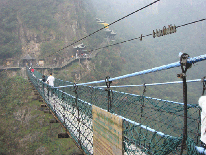 雙童吸管旅游團(tuán)的員工挑戰(zhàn)“驚險(xiǎn)”鐵索橋