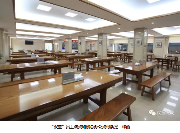 因此,“雙童”的員工餐廳配備了優(yōu)質(zhì)硬件,每一張餐桌重達(dá)四五百斤,由“木中之王”的柚木定制而成,兩三年油漆刷一次就和新的一樣,然而這個(gè)餐桌再過(guò)50年還會(huì)越來(lái)越值錢(qián)。